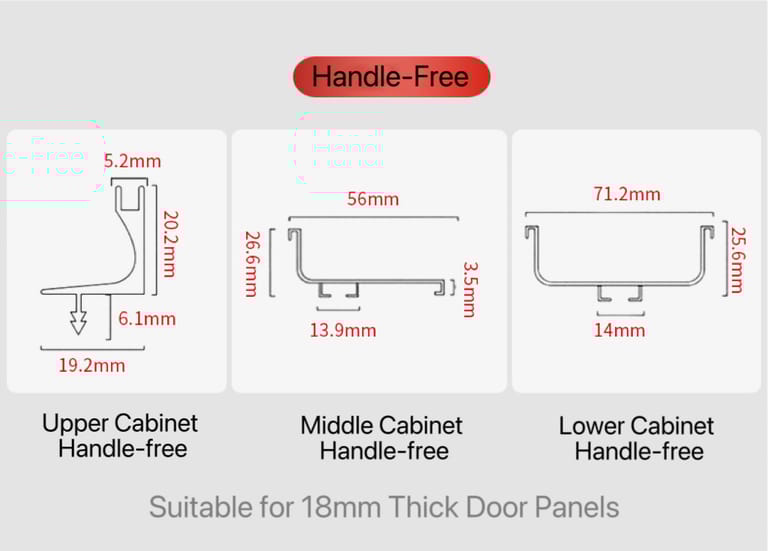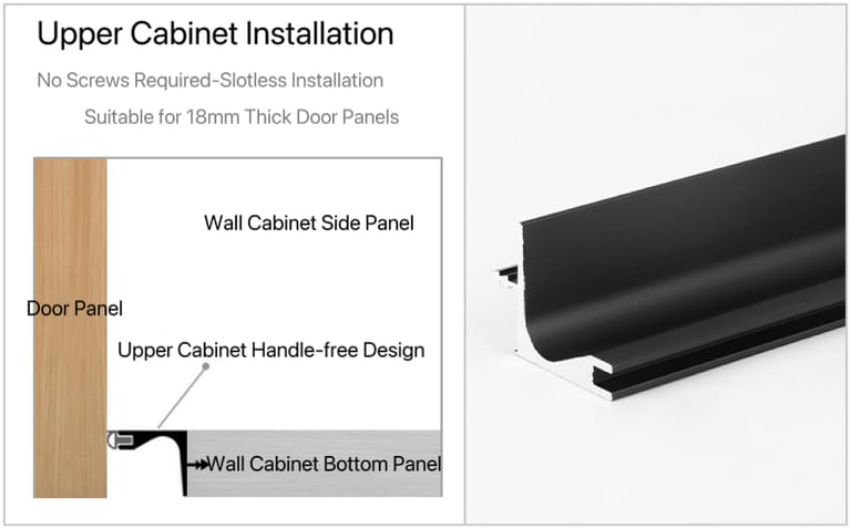 This handle-free fits all cabinets, seamlessly adapting to the installation needs of upper, middle, and lower cabinets for a cohesive overall look: