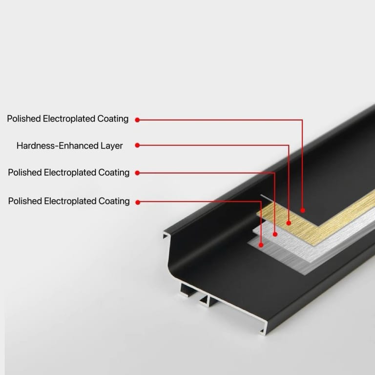 Crafted from aluminum alloy, this handle is manufactured using a cold extrusion process to ensure a dense structure of the blank. After forming, it undergoes ultrasonic cleaning to remove contaminants, followed by anodization treatment. The edges are precision-finished and the curves polished to a smooth roundness using CNC equipment. The finished product must pass multiple tests including load-bearing, salt spray, and wear resistance to guarantee durability and safety.