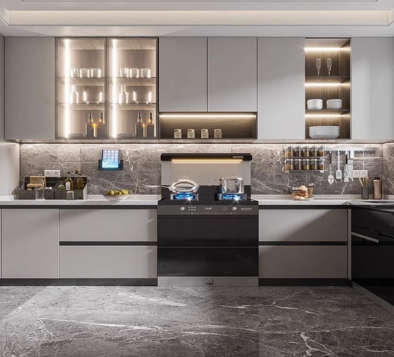 This aluminum alloy handle-free upper/middle/lower cabinet redefines cabinet design with "invisible aesthetics". Boasting no protruding parts to prevent collisions and seamless surfaces for easy cleaning, it combines 6063-T5 aerospace-grade aluminum alloy with anodization treatment, perfectly integrating durable quality and minimalist elegance.