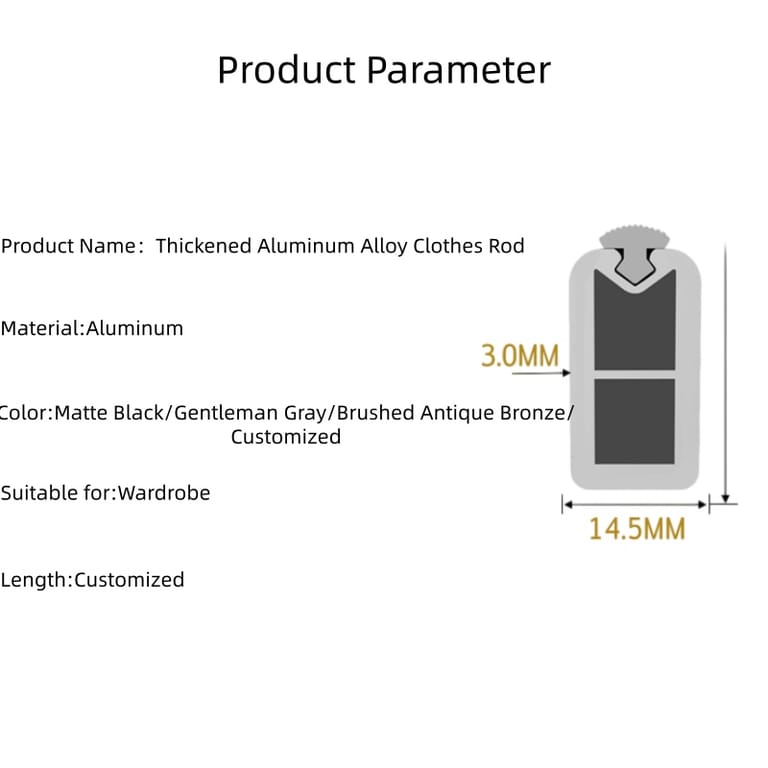 Customizable Aluminum Cloth Hanging Rod for Wardrobe & Cabinet Systems | OEM/ODM Supported