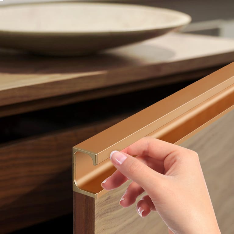 Screw-Free Slot-In Installation: Install effortlessly by slotting the handle into pre-cut grooves on furniture panels (just apply adhesive and embed) – no drilling required, preserving furniture integrity (ideal for rented spaces or high-end cabinetry).
