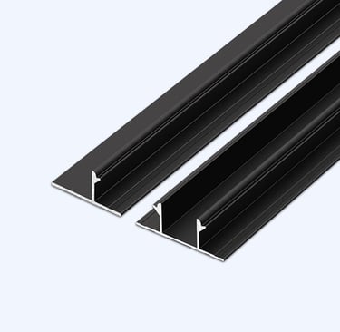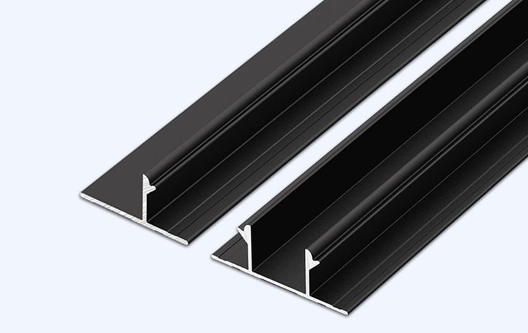 Profile options: Single T-shape (subtle) or Double T-shape (floating ceiling effect)