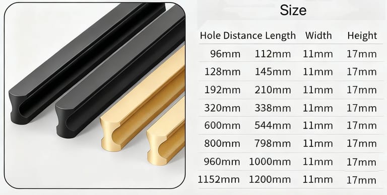 Texture Performance: Matte black suits minimalism or dark-themed decor; brushed gold complements luxury or cream-style spaces. Both colors elevate cabinet door elegance with understated lines.