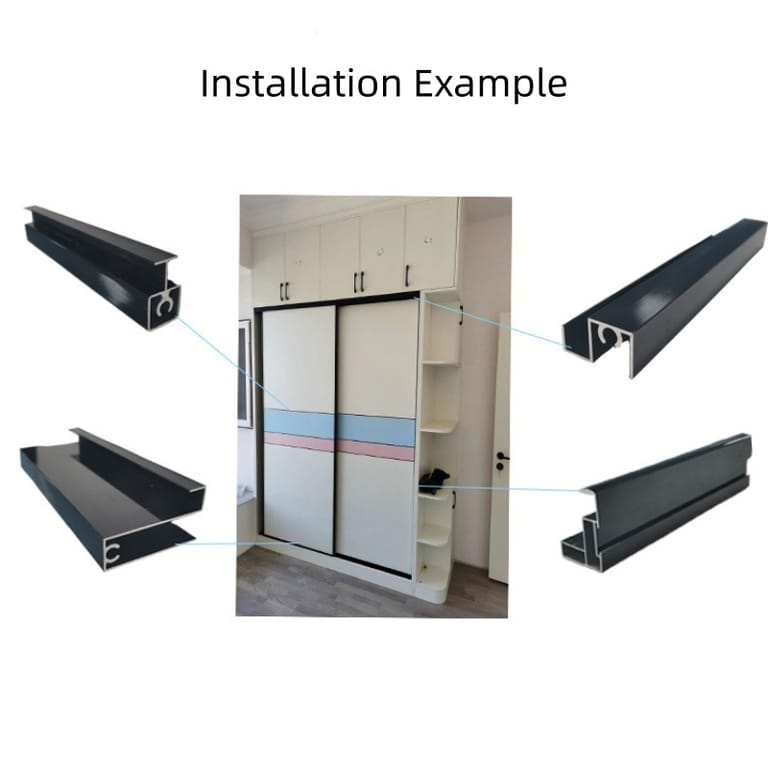 Upgrade your closet with the 18mm series sliding door aluminum frame – durable aluminum tracks, smooth sliding, multi-color options for custom built-in/walk-in wardrobe designs, solving gaps and jitter issues effortlessly.