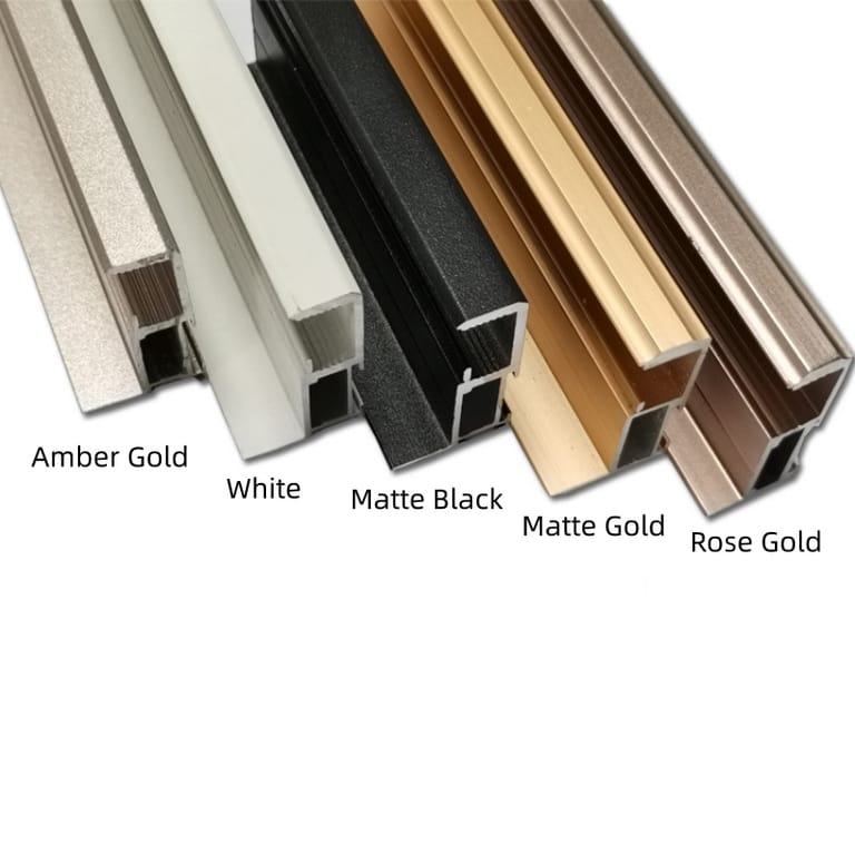 This frame is crafted from high-strength aluminum alloy, designed to fit 18mm-thick door panels (compatible with MDF, glass, and laminate materials). It comes in colors including amber gold, white, matte black, matte gold, and rose gold. It suits custom wardrobes, built-in closets, and walk-in storage spaces, with core performance of rust resistance, wear resistance, and smooth sliding.
