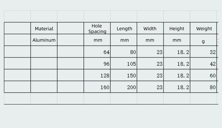 Hole spacing 160mm, total length 200mm, width 23mm, height 18.2mm, weight 80g