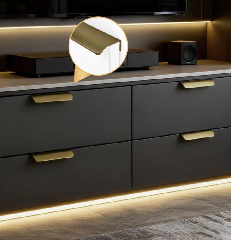 2-in-1 Edge Sealing + Handle: Replaces separate edge strips & pulls – cuts hardware costs while keeping cabinets sleek