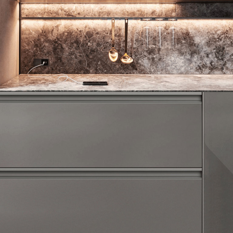 Don’t let bulky pulls ruin your cabinets’ neat look. This G-shape groove pull keeps cabinets safe (no bumps) and stylish (acts as a decorative line) – turning functional cabinets into polished, detail-focused pieces.