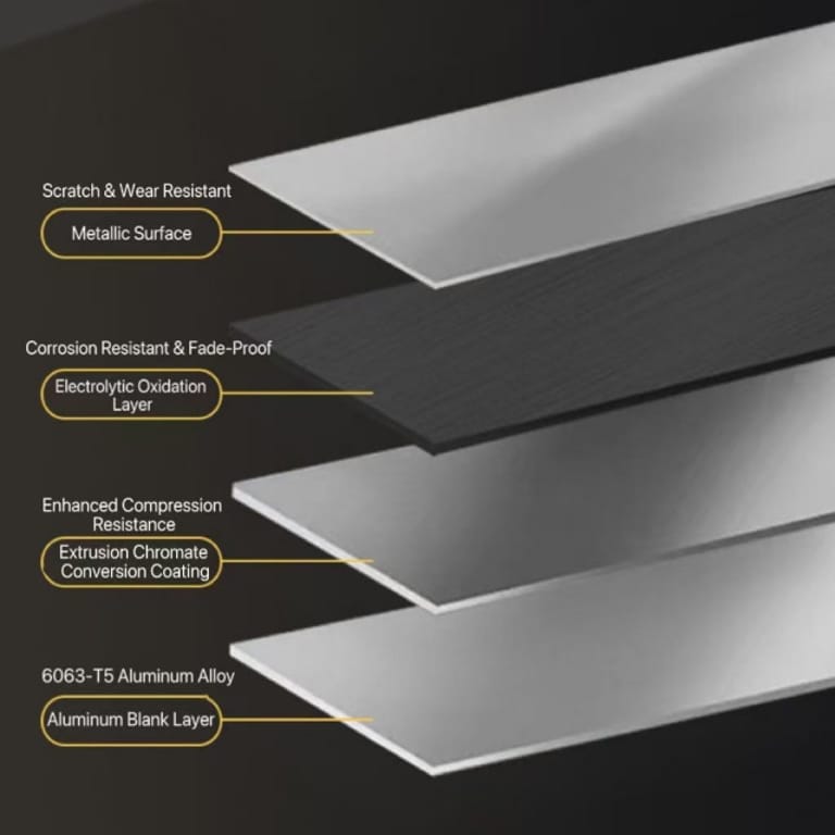 Made with 6063-T5 aviation-grade aluminum and 4 protective layers: