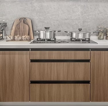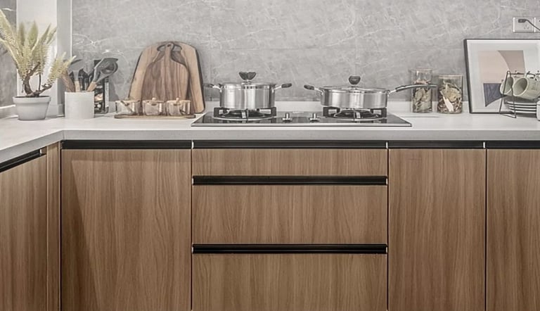 Aluminum Grooved Handles: Perfect for new builds, full kitchen/bath remodels, or custom cabinets with thick panels (solid wood, MDF). Maintenance requires brushing dust from the groove with a soft brush + mild cleaner; avoid scratching the aluminum edges with sharp tools. Best for homeowners committing to long-term decor.