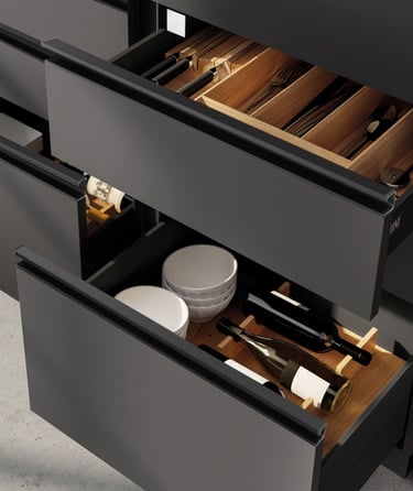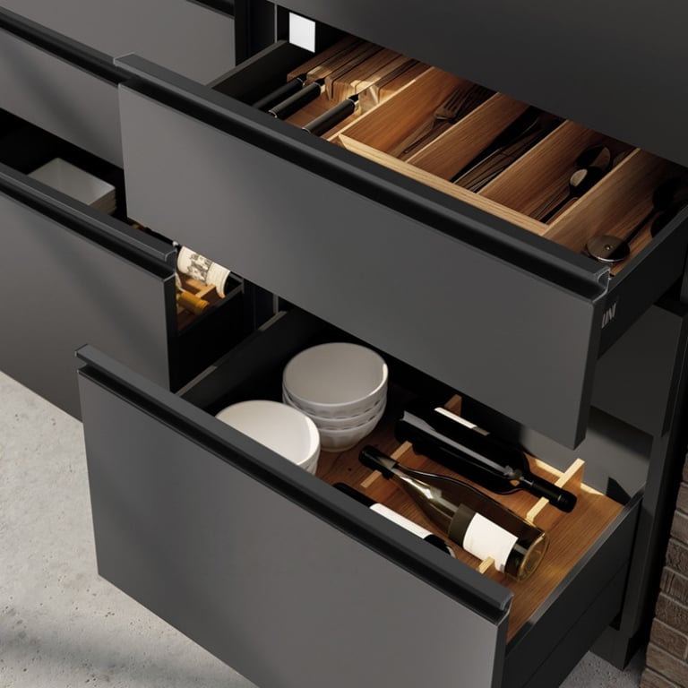 Aluminum Grooved Handles: Flush aluminum construction is kid/pet-safe (no snags) and durable for heavy drawers. However, the groove traps dust—regular cleaning is needed.