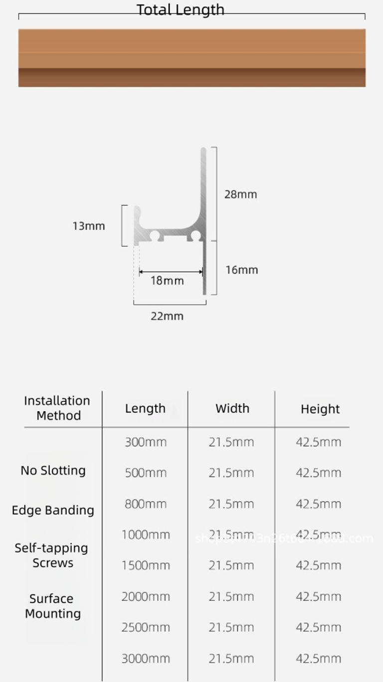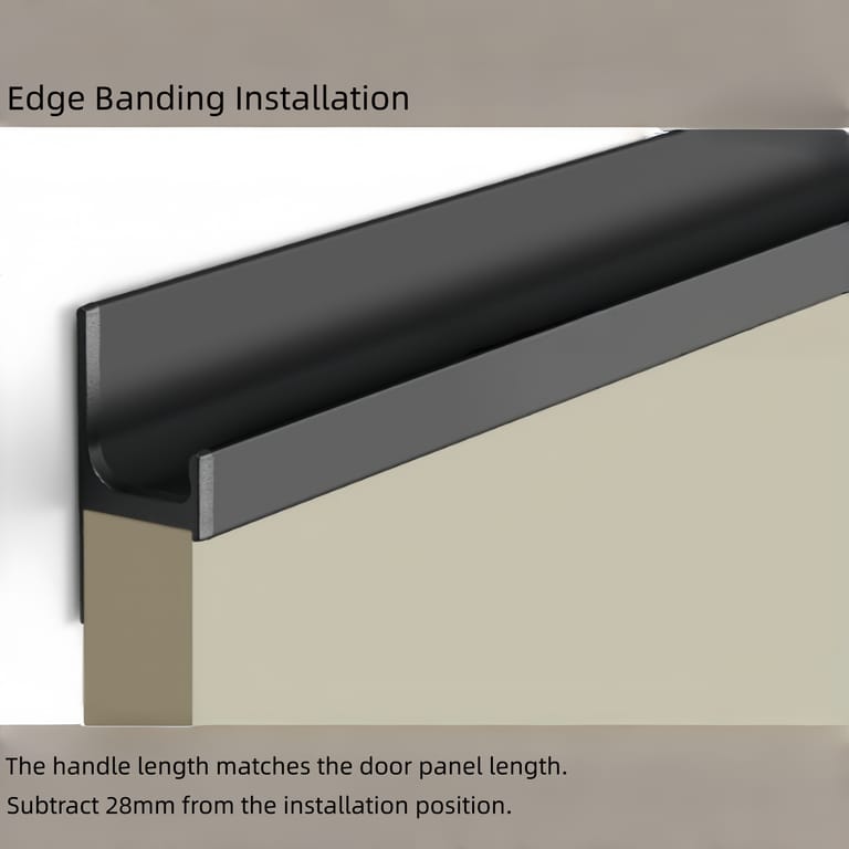 Edge-Sealing (No Slotting): Attach directly to cabinet edges for a modern floating look. Simply use the included edge-sealing end caps and reduce the visible handle length by 28mm. No complex routing required.