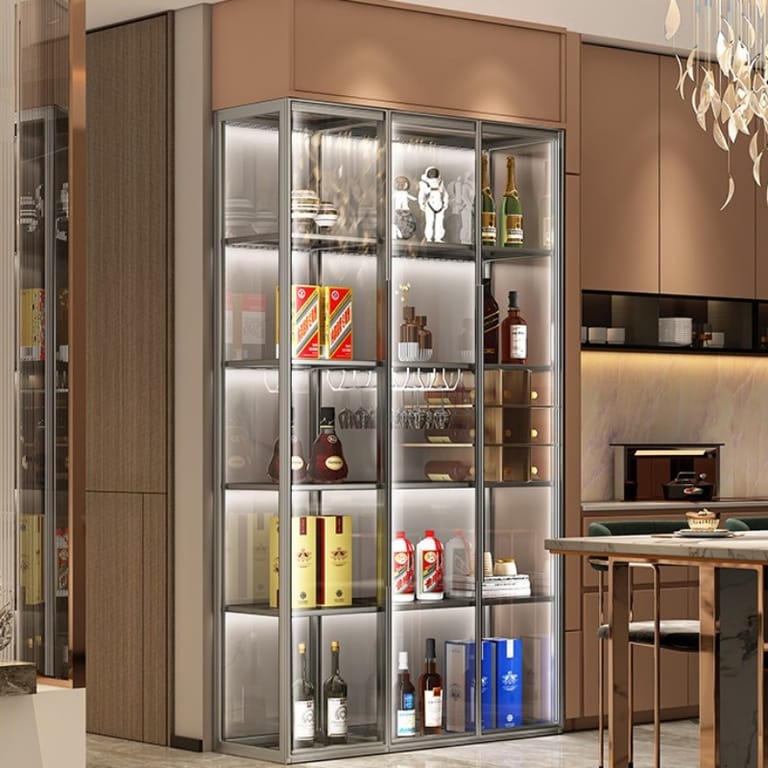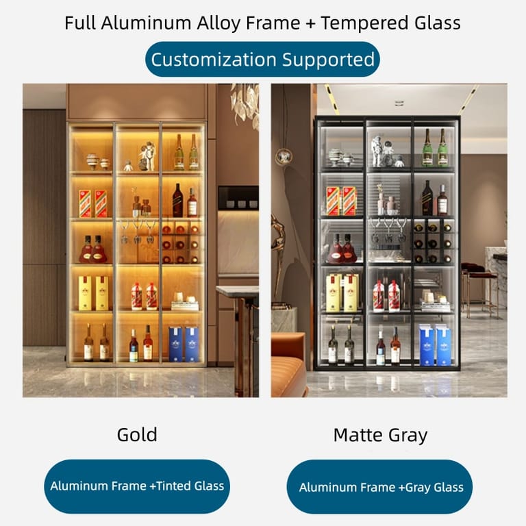 LED Lighted Glass Liquor Cabinet: Aluminum Frame, Sensor Lights & Explosion-Proof Glass for Home/Commercial Use