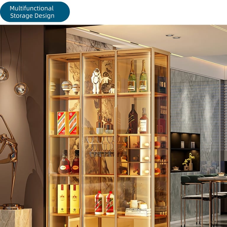 Multi-layer storage: Adjustable shelves maximize space, accommodating wine bottles, spirits, and glassware of various sizes