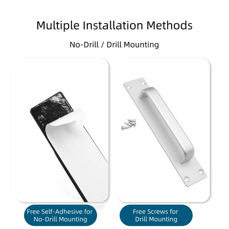Dual Installation Options: Supports drill-mount (countersunk screws for tight fixing) or adhesive-mount (strong back glue, no damage)—suits all furniture board types, easy for DIY or pros.